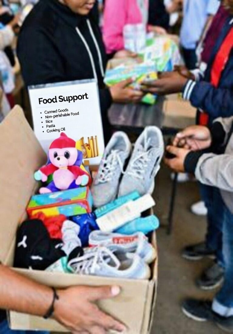 Clothing & Shoes Season-appropriate outfits (underwear, socks, pants/shorts, shirts, jackets, pajamas), plus at least one brand-new pair of sneakers or school shoes in the correct size. We aim for 5–7 full outfits per child so families don’t have to worry about laundry every single day.